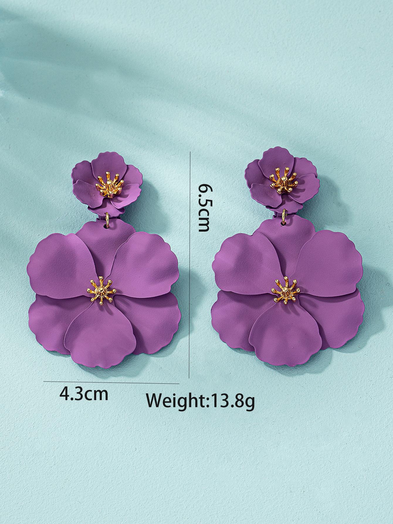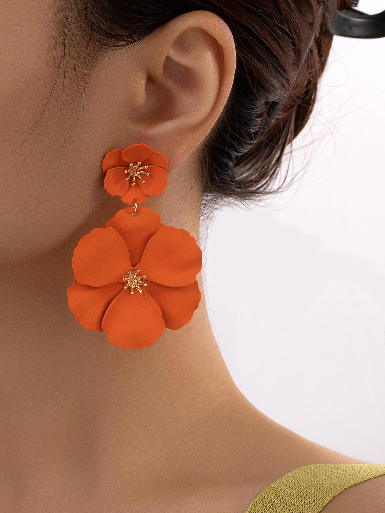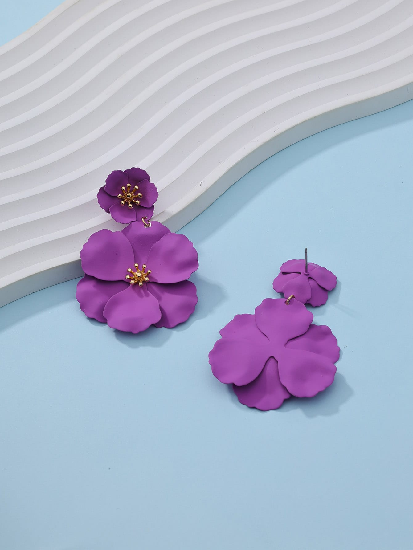 1 paire de boucles d'oreilles pendantes en métal à fleurs multicouches colorées, design asymétrique. Cadeau pour les rendez-vous, la Saint-Valentin, la mère, la fête des mères