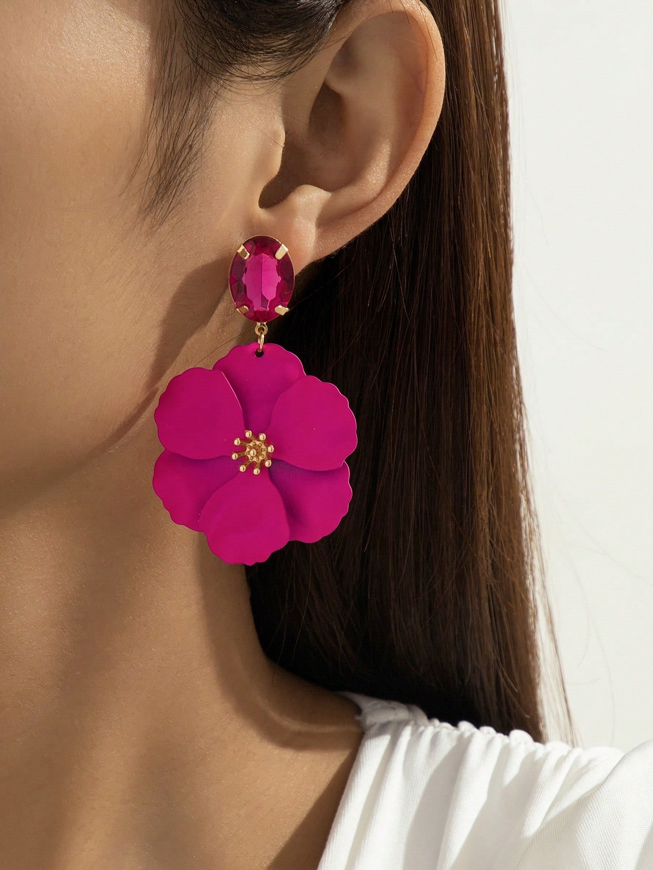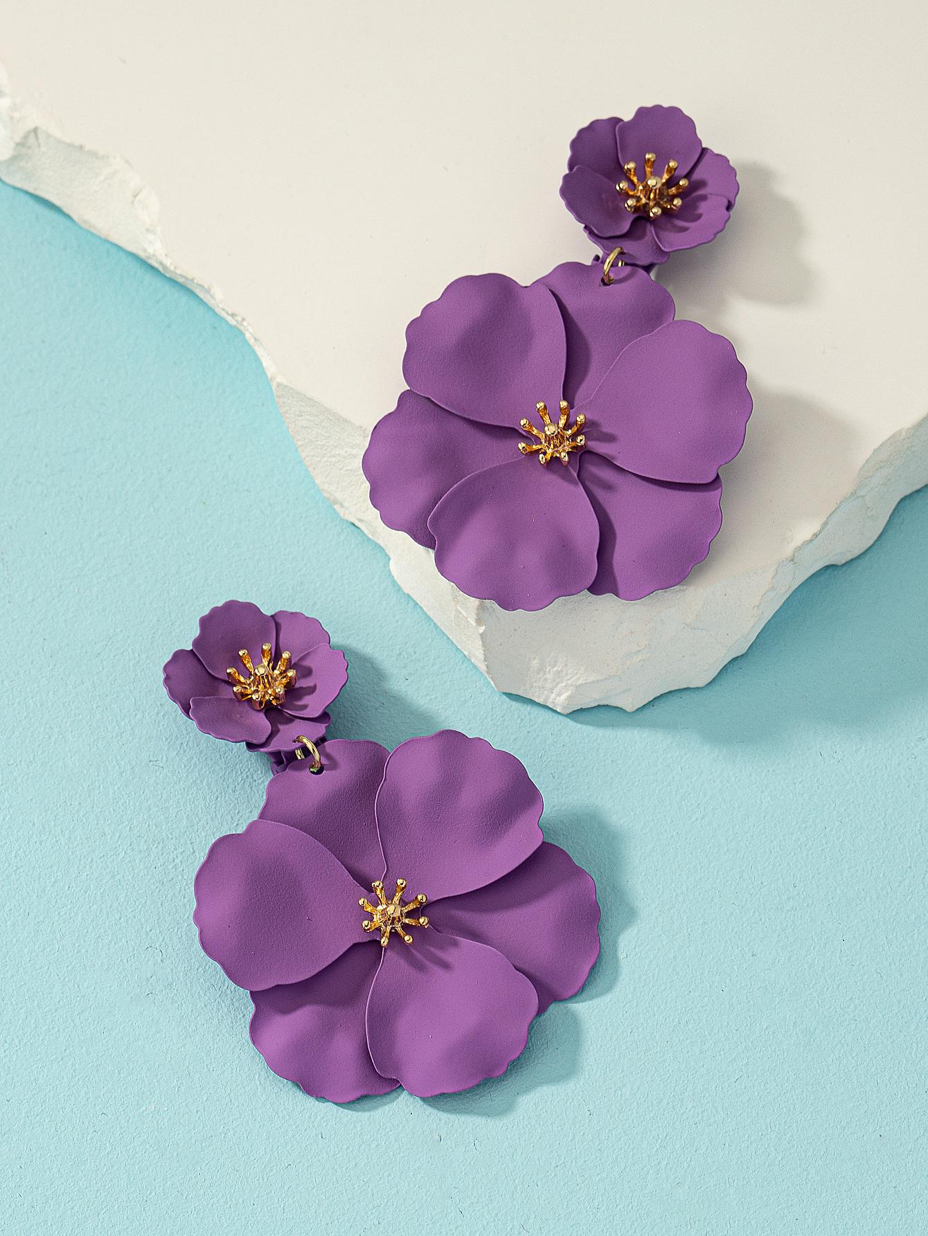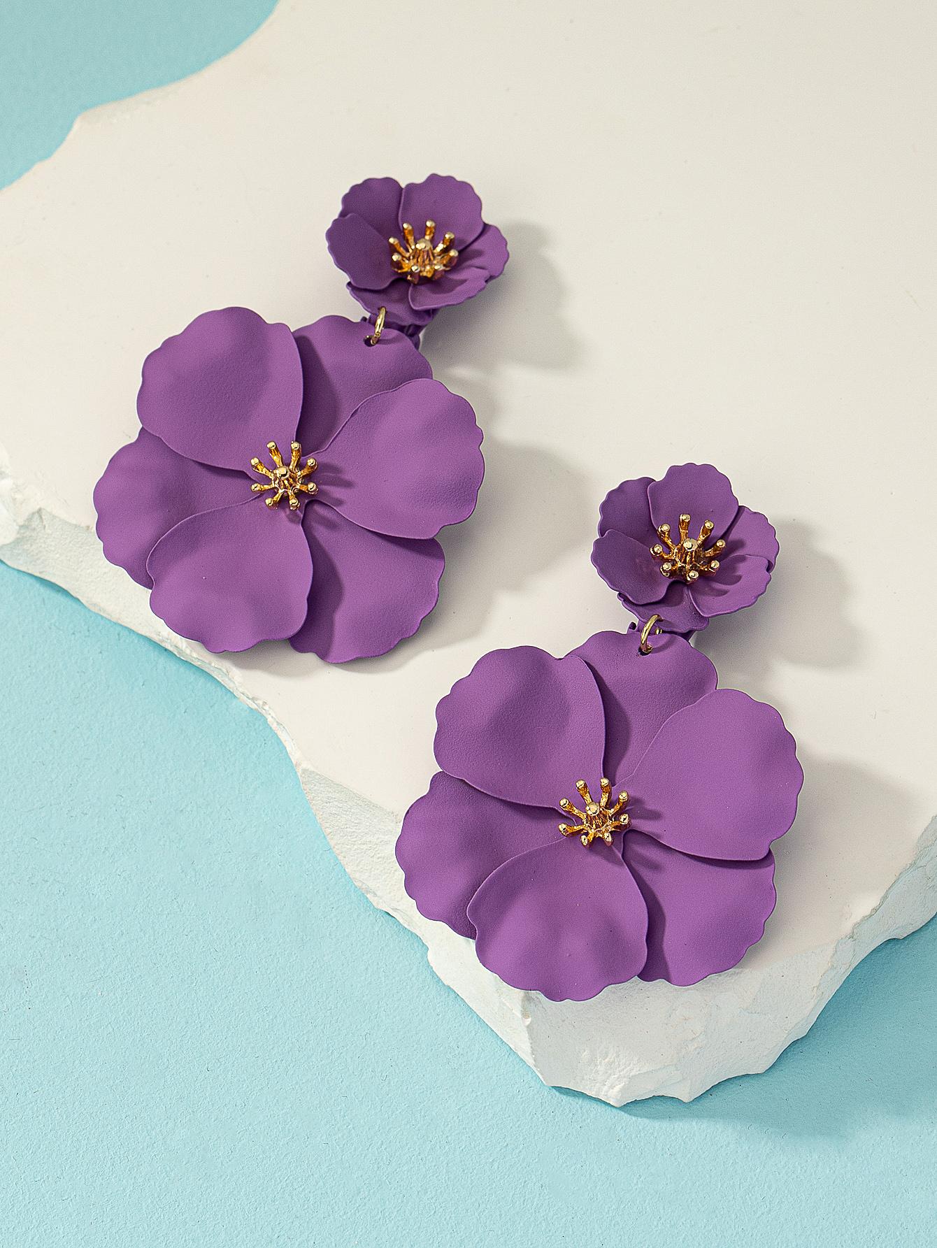 1 paire de boucles d'oreilles pendantes en métal à fleurs multicouches colorées, design asymétrique. Cadeau pour les rendez-vous, la Saint-Valentin, la mère, la fête des mères