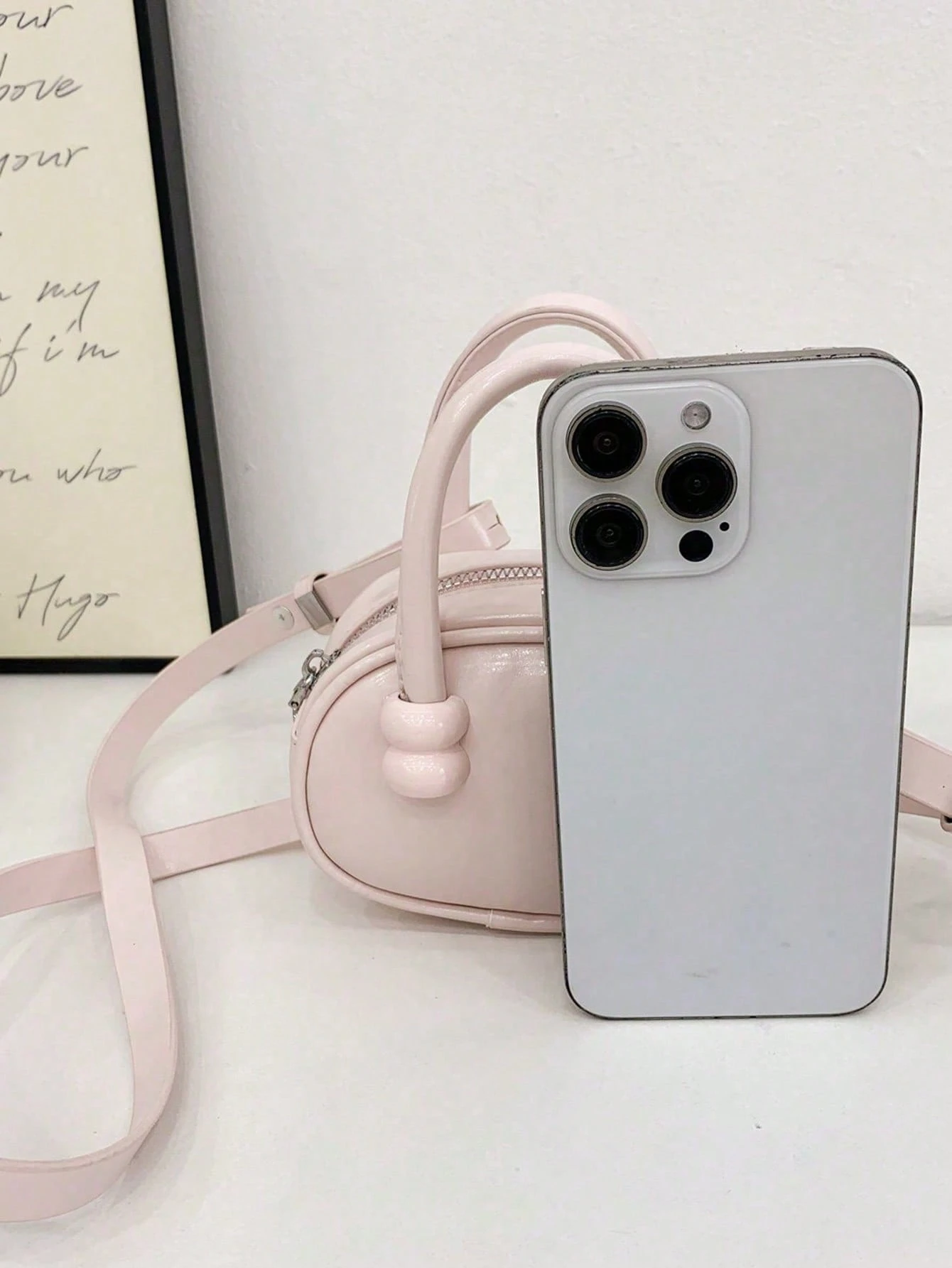 1 pièce Mini sac à main avec fermeture éclair en PU, style élégant, couleur vive et douce, design de niche haut de gamme, confortable et polyvalent, avec une bandoulière lisse. Un sac pratique pour ranger son rouge à lèvres, parfait pour sortir, les activ