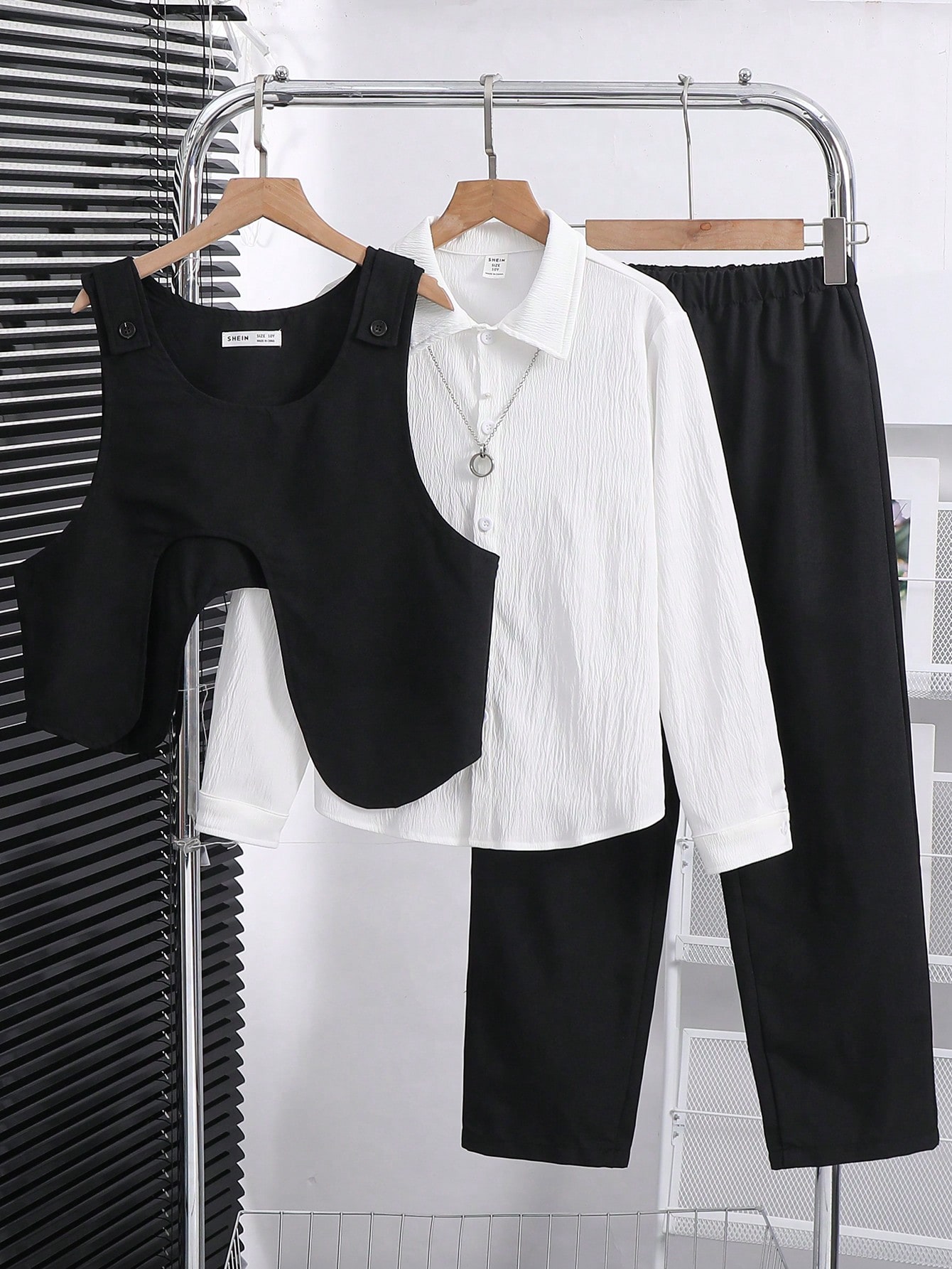 3 pièces/set Chemise, ensemble gilet et pantalon