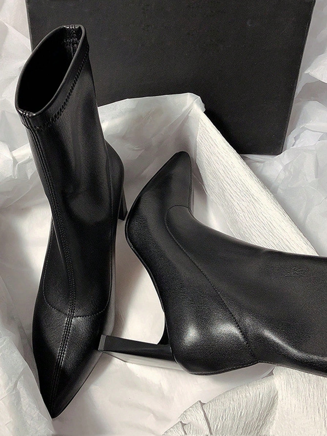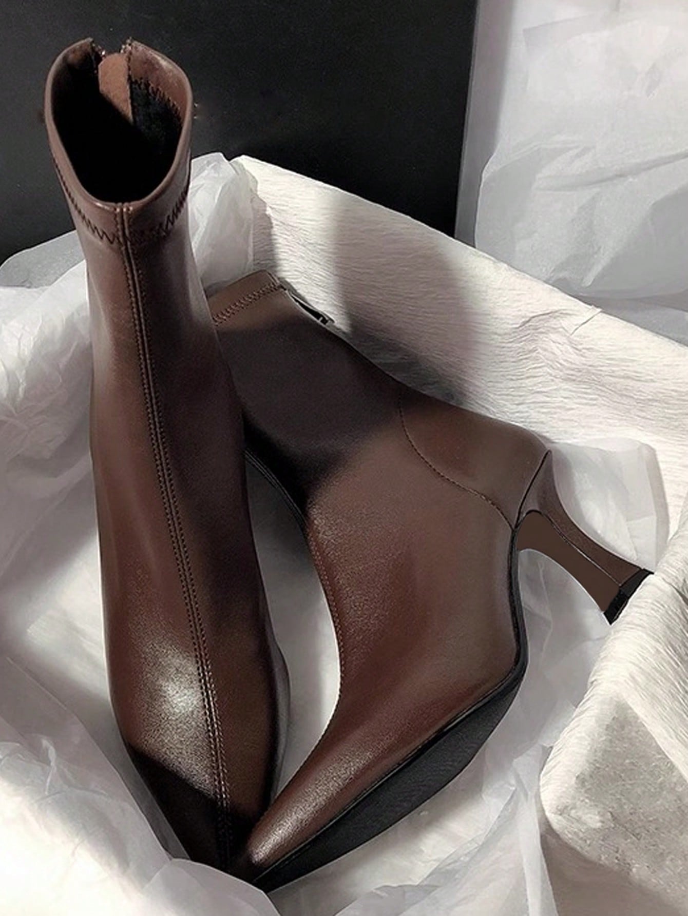 Bottes à talons hauts à bout pointu pour femmes, style automne/hiver 2025 avec fermeture éclair à l'arrière, bottes courtes de style britannique à la mode. Assortiment mode pour robes de femmes