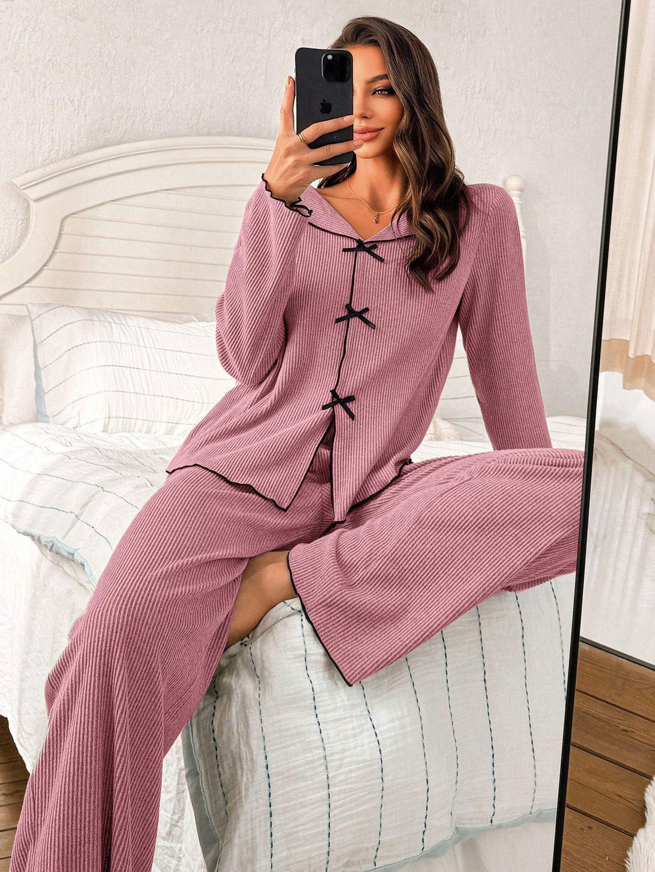 Ensemble pyjama avec haut à manches longues col V