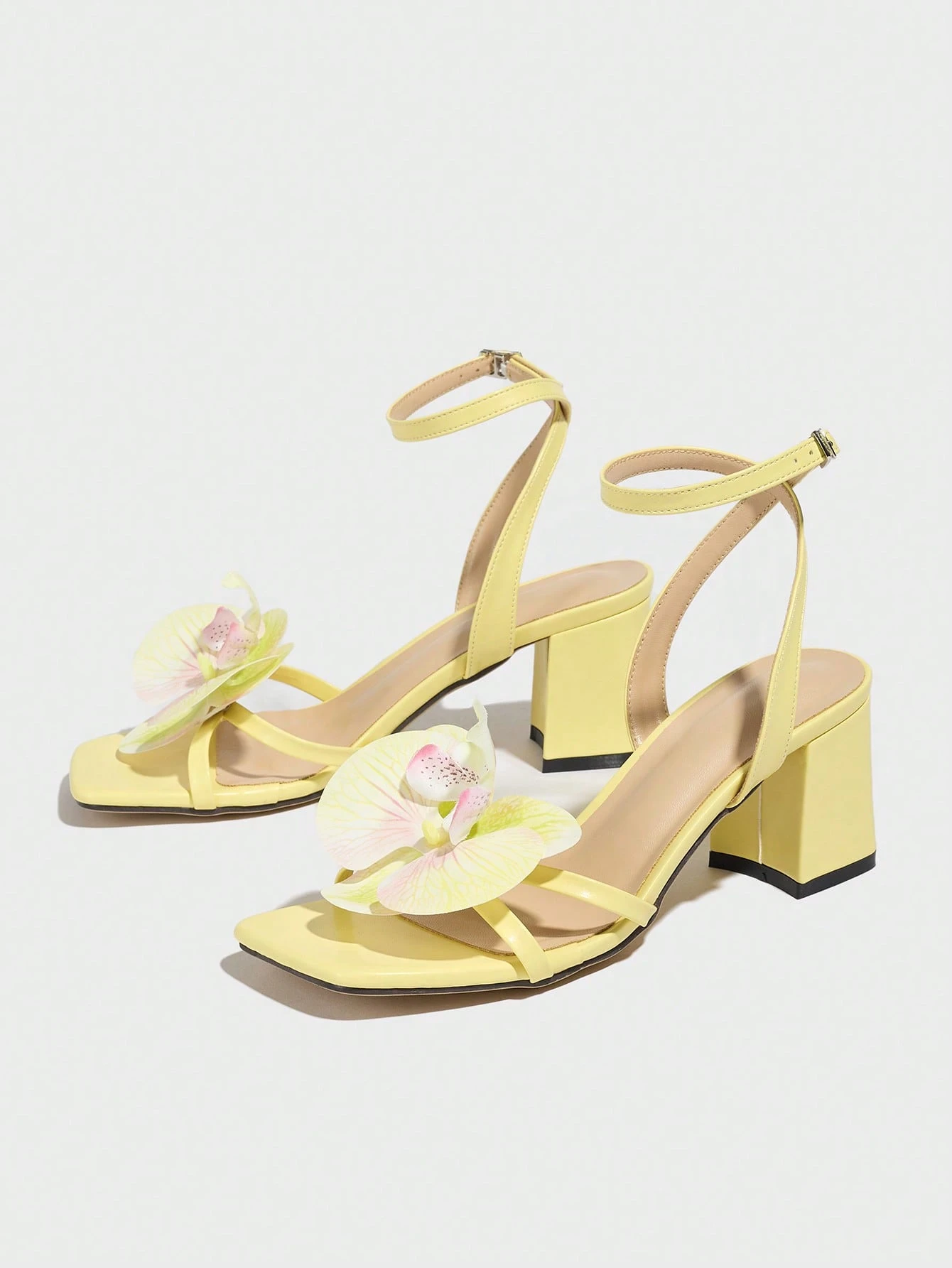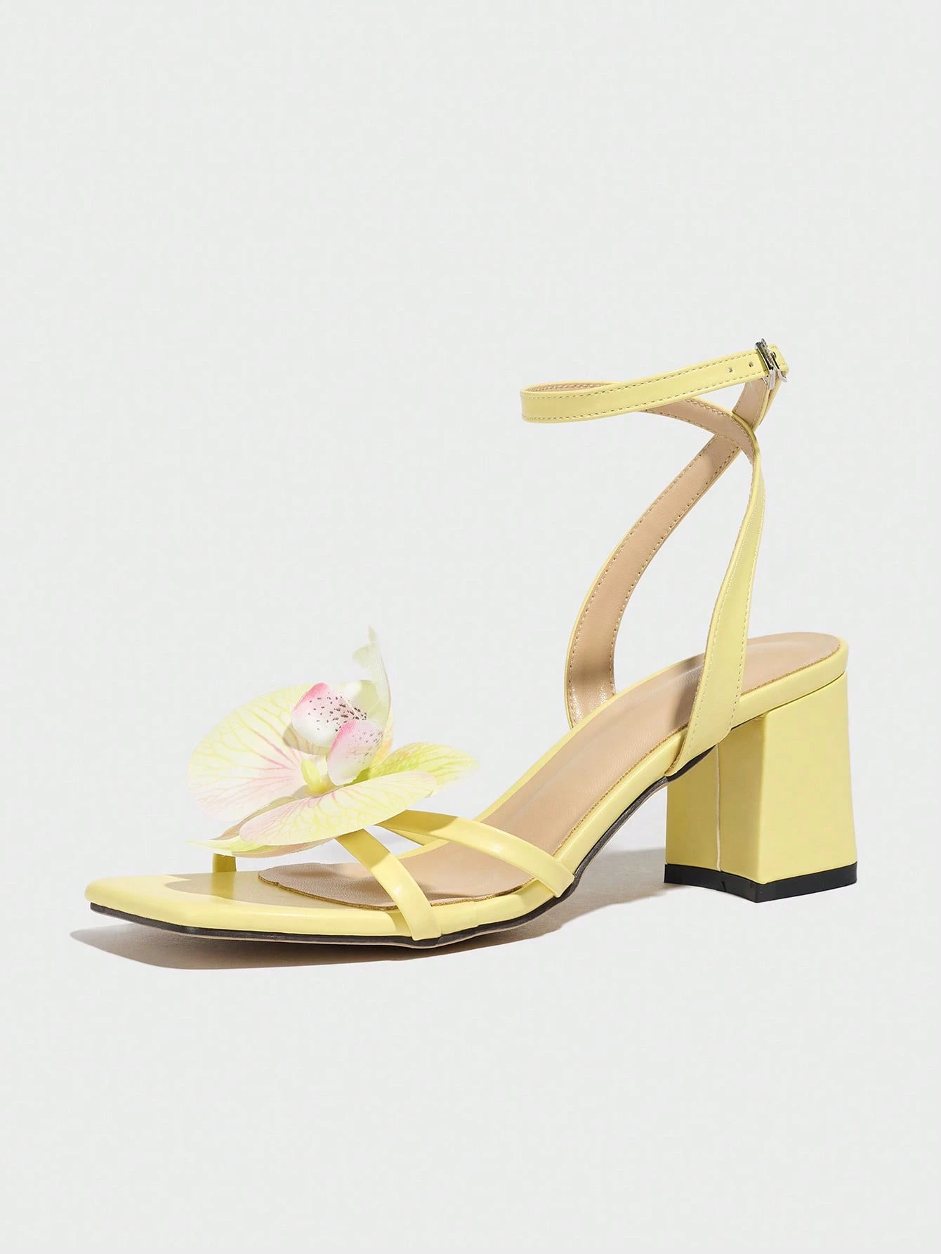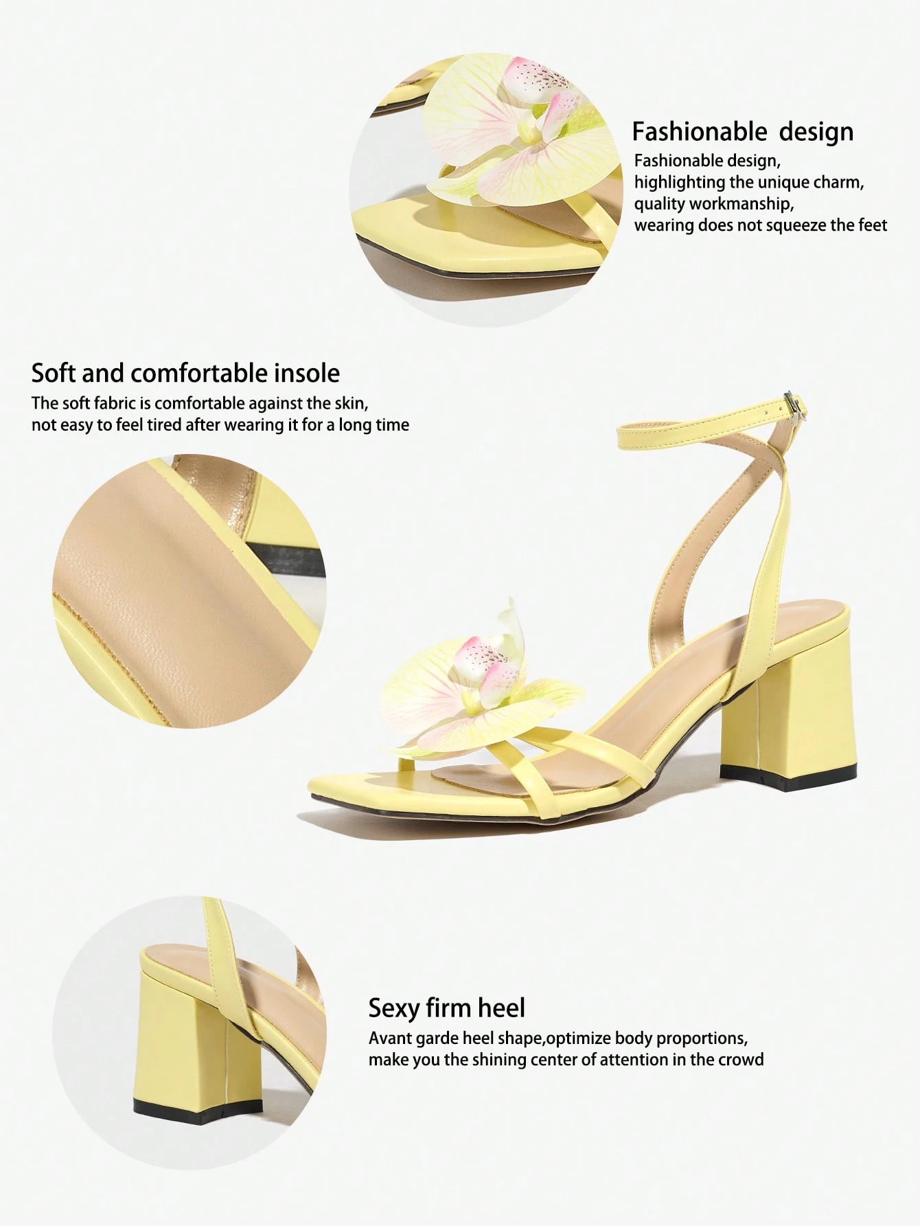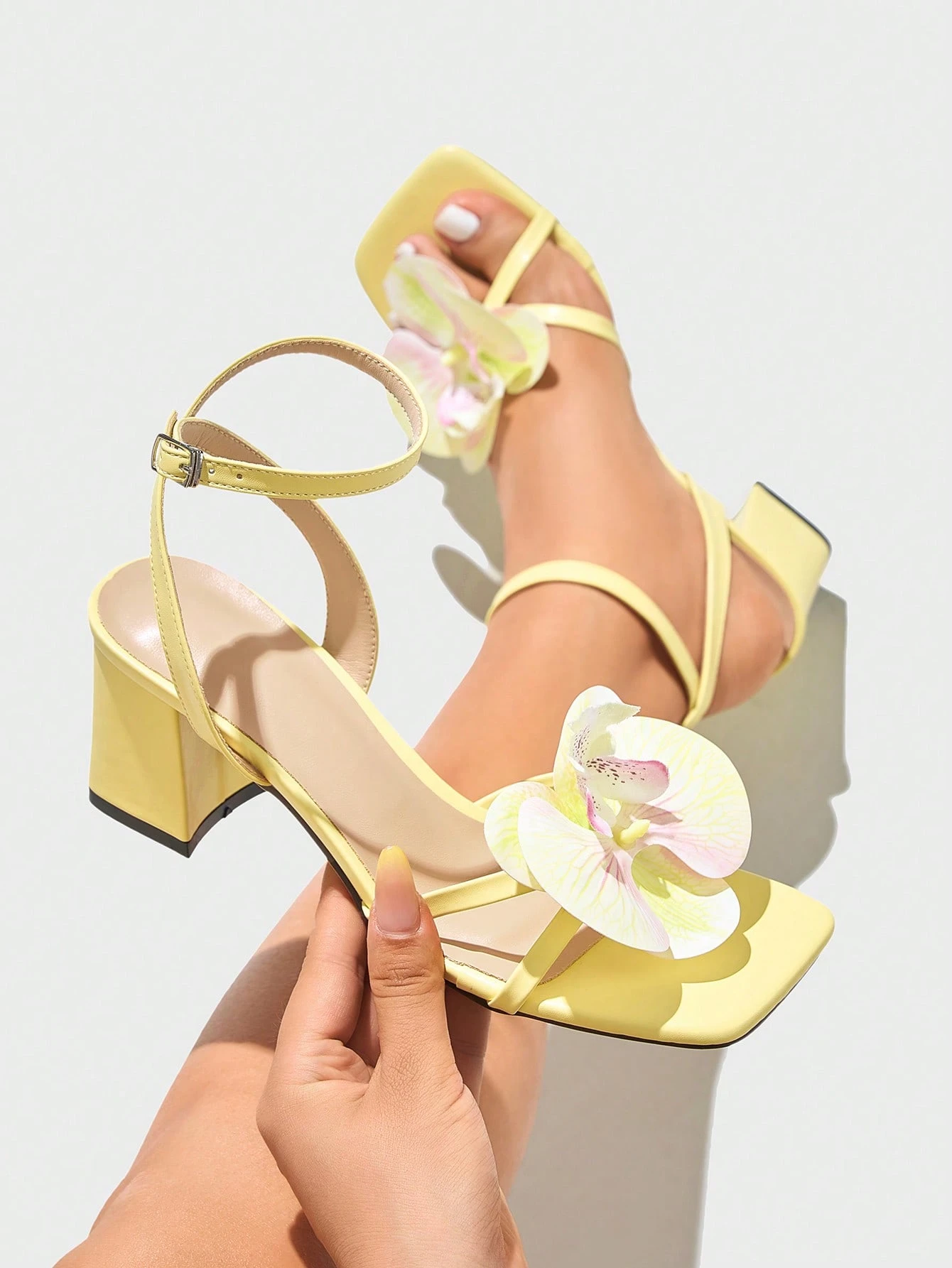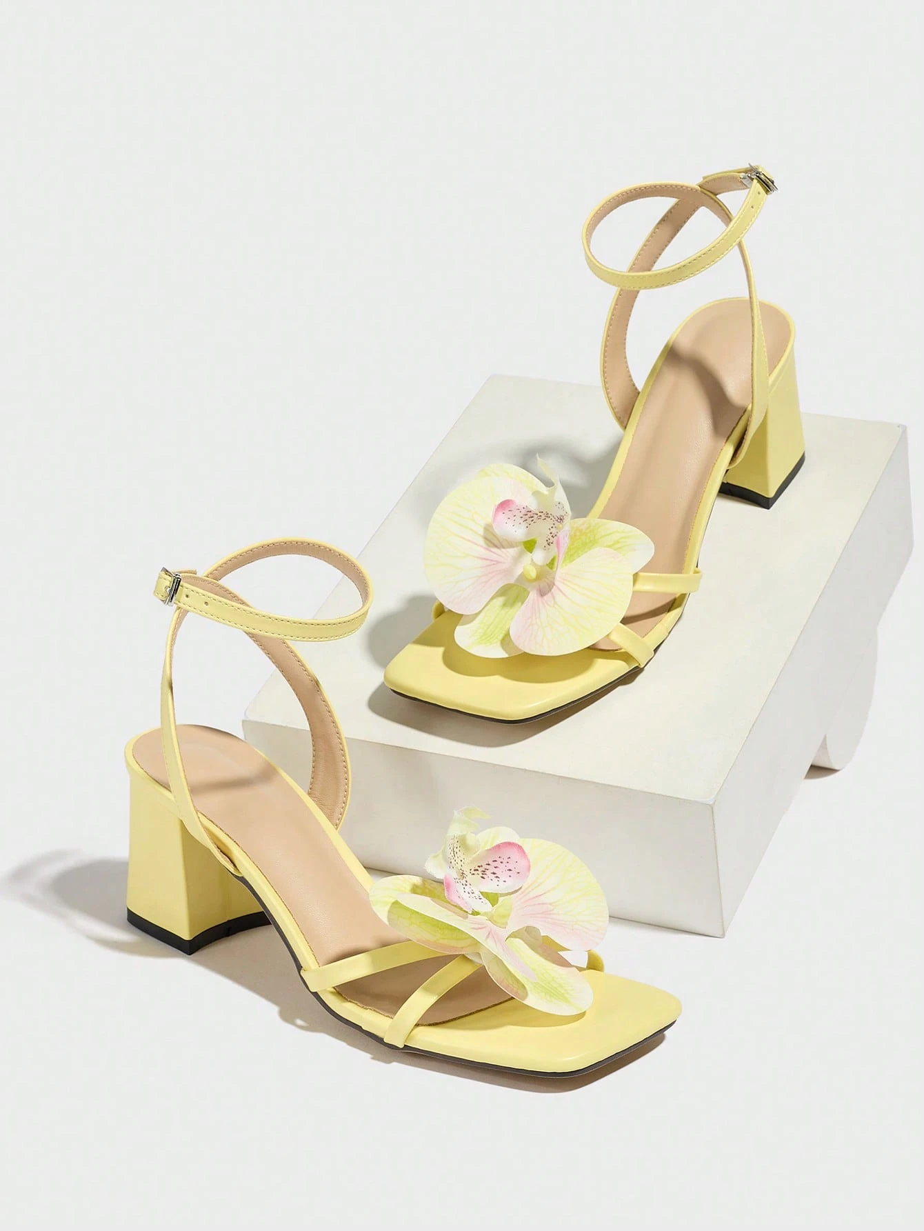 Sandales gladiateur à fleurs à talons hauts jaunes