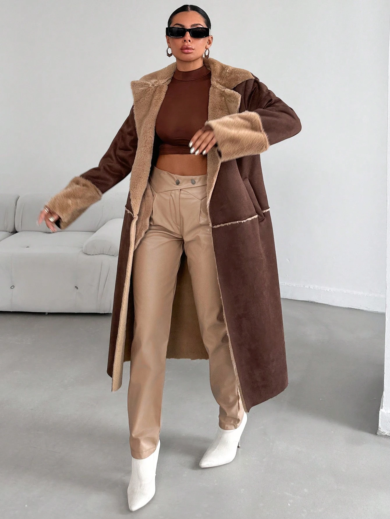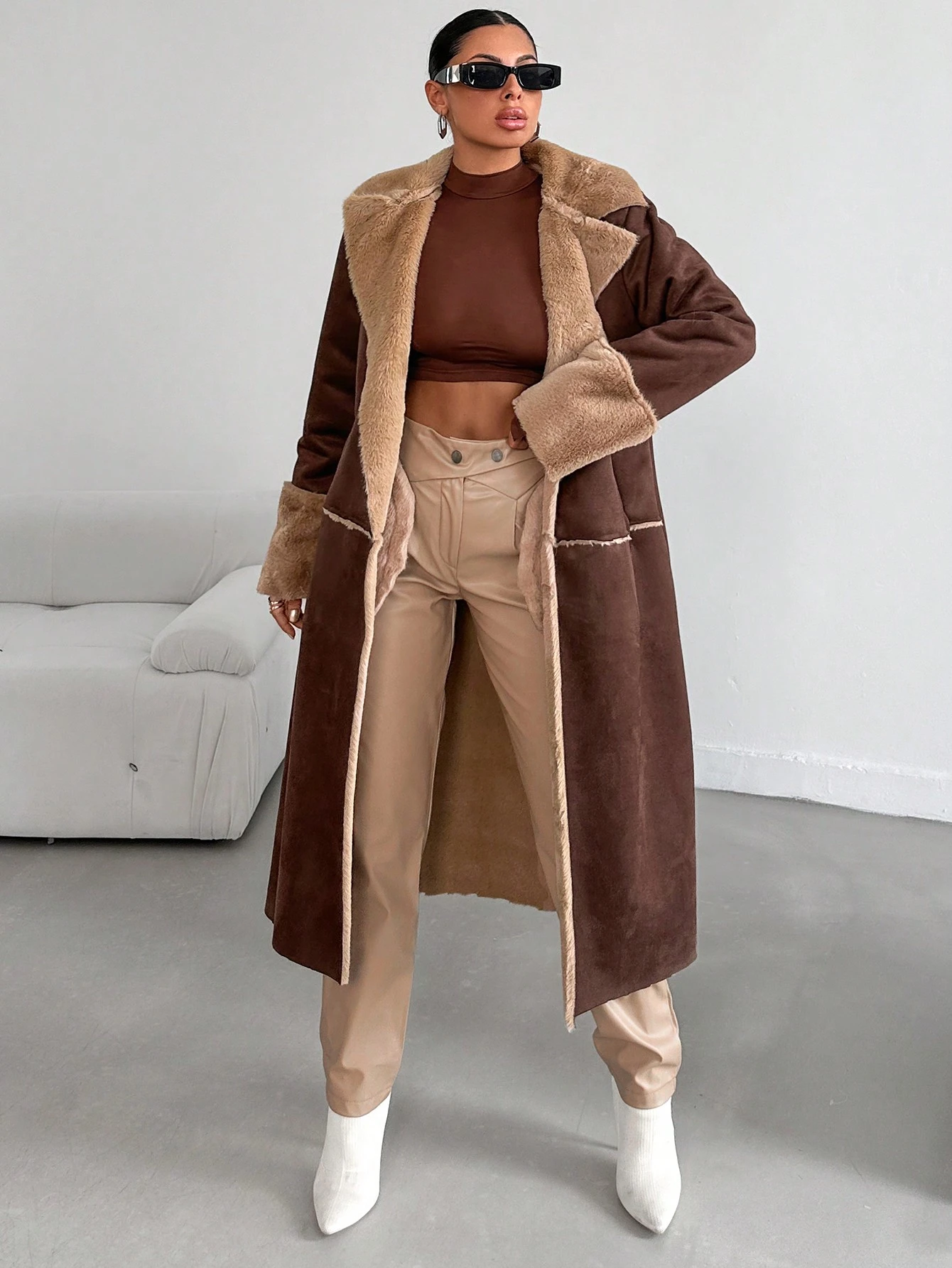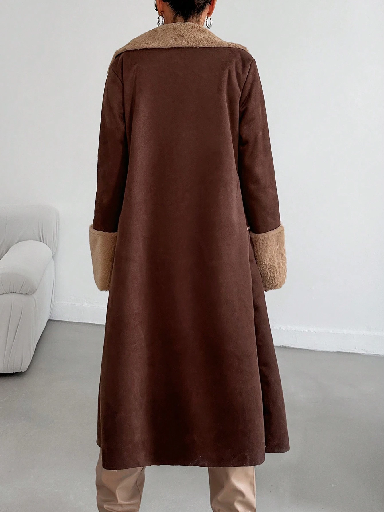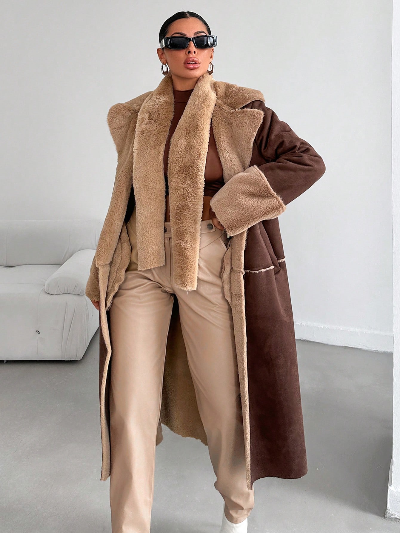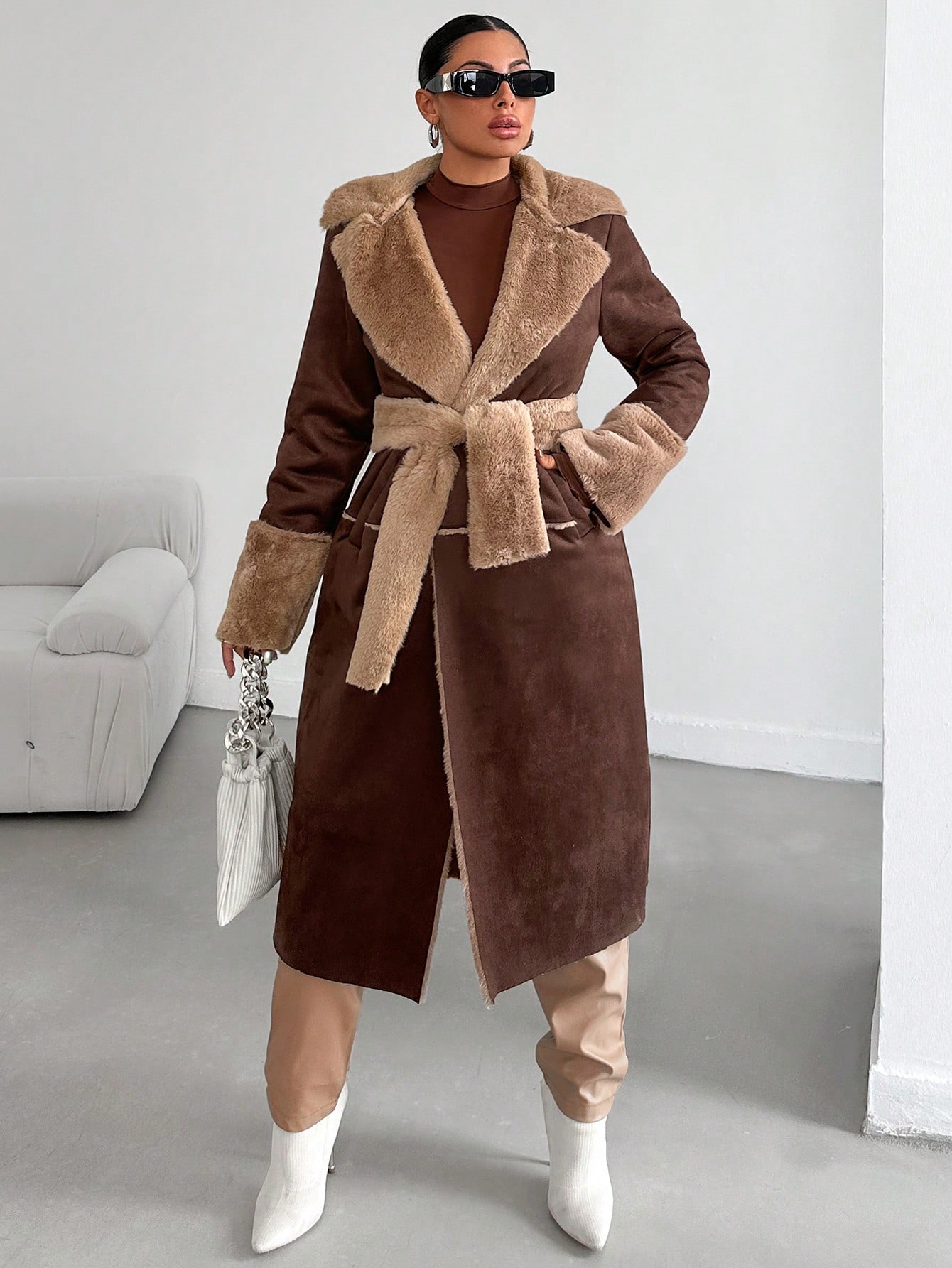 SHEIN Manteau Duveteux Doublure Ceinturé